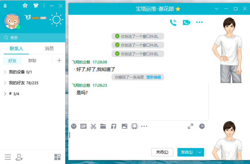 10.解除隐身或离线给对方发送窗口抖动过于频繁限制可无限制发送