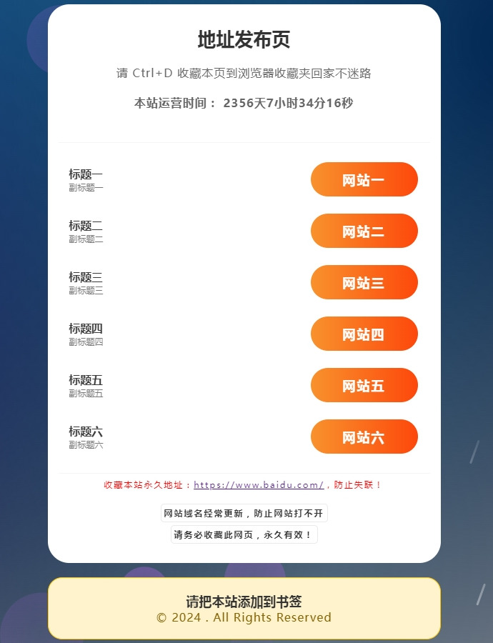 2.本源码为纯静态html引导页,无后台;修改链接即可,背景是动态气泡背景。